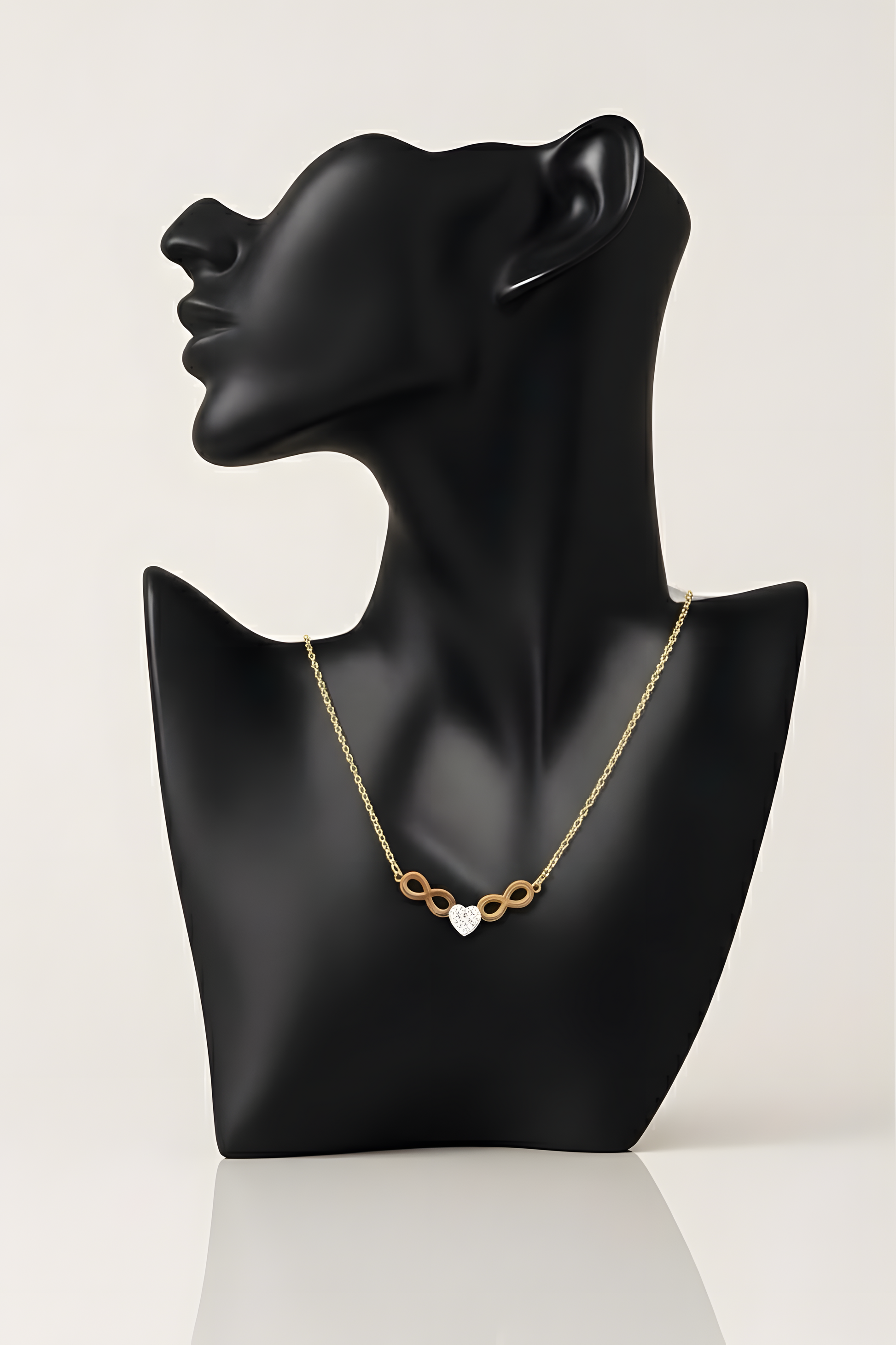 Exprimez un sentiment qui dure pour toujours. Ce pendentif symbolique met en scène un cœur central étincelant, délicatement encadré par deux symboles de l'infini entrelacés. Ce collier en or est le cadeau parfait pour célébrer un engagement, l'amour inconditionnel ou une amitié durable. Un bijou chargé de sens et d'une élégance intemporelle.